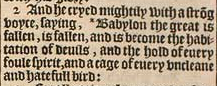 2 And he cryed mightily with a strōg voyce, *saying, Babylon the great is fallen, is fallen, and is become the habitation of deuils, and the hold of euery foule spirit, and a cage of euery vncleane and hatefull bird:[*Chap.14. 8.]