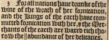 3 For all nations haue drunke of the wine of the wrath of her fornication, and the Kings of the earth haue committed fornication with her, & the Merchants of the earth are waxed rich thorow the || abundance of her delicacies.[||Or, power.]
