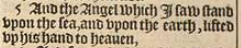 5 And the Angel which I saw stand vpon the sea, and vpon the earth, lifted vp his hand to heauen,