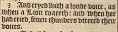 3 And cryed with a loude voice, as when a Lion roareth: and when hee had cried, seuen thunders vttered their voices.