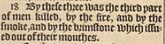 18 By these three was the third part of men killed, by the fire, and by the smoke, and by the brimstone which issued out of their mouthes.