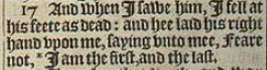 17 And when I sawe him, I fell at his feete as dead: and hee laid his right hand vpon me, saying vnto mee, Feare not, *I am the first, and the last.[*Esay. 41. 4.and 44.6]