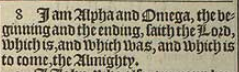 8 "Ich bin Alpha und Omega, der Anfang und das Ende", sagt der Herr, "der ist und der war und der kommen wird, der Allmächtige."