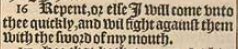 16 Repent, or else I will come vnto thee quickly, and wil fight against them with the sword of my mouth.