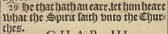 29 He that hath an eare, let him heare what the Spirit saith vnto the Churches.