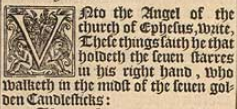 1 Vnto the Angel of the church of Ephesus, write, These things saith he that holdeth the seuen starres in his right hand, who walketh in the midst of the seuen golden Candlesticks: