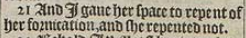 21 And I gaue her space to repent of her fornication, and she repented not.