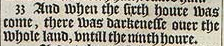 33 And when the sixth houre was come, there was darkenesse ouer the whole land, vntill the ninth houre.