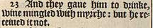 23 And they gaue him to drinke, wine mingled with myrrhe: but he receiued it not.