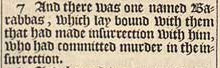 7 And there was one named Barabbas, which lay bound with them that had made insurrection with him, who had committed murder in the insurrection.