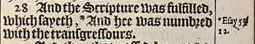 28 And the Scripture was fulfilled, which sayeth, *And hee was numbred with the transgressours.[*Esay 53. 12.]