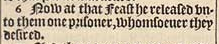 6 Now at that Feast he released vnto them one prisoner, whomsoeuer they desired.