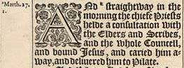 1 And *straightway in the morning the chiefe Priests helde a consultation with the Elders and Scribes, and the whole Councell, and bound Iesus, and caried him away, and deliuered him to Pilate.[*Matth.27. 1.]
