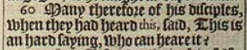 60 Many therefore of his disciples, when they had heard this, said, This is an hard saying, who can heare it?