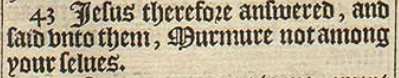 43 Iesus therefore answered, and said vnto them, Murmure not among your selues.