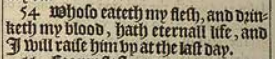 54 Whoso eateth my flesh, and drinketh my blood, hath eternall life, and I will raise him vp at the last day.