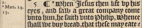 5 ¶ *When Iesus then lift vp his eyes, and saw a great company come vnto him, he saith vnto Philip, Whence shall we buy bread, that these may eate?[*Matt. 14.15.]