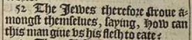52 The Iewes therefore stroue amongst themselues, saying, How can this man giue vs his flesh to eate?