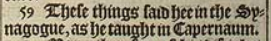 59 These things said hee in the Synagogue, as he taught in Capernaum.