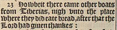 23 Howbeit there came other boats from Tiberias, nigh vnto the place where they did eate bread, after that the Lord had giuen thankes: