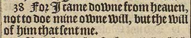 38 For I came downe from heauen, not to doe mine owne will, but the will of him that sent me.