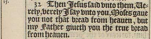 32 Then Iesus said vnto them, Uerely, verely I say vnto you, Moses gaue you not that bread from heauen, but my Father giueth you the true bread from heauen.