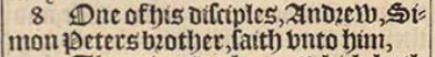 8 One of his disciples, Andrew, Simon Peters brother, saith vnto him,