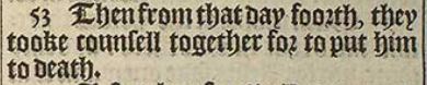 53 Then from that day foorth, they tooke counsell together for to put him to death.