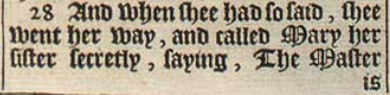 28 And when shee had so said, shee went her way, and called Mary her sister secretly, saying, The Master is come, and calleth for thee.