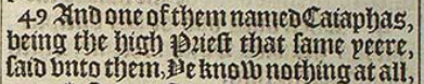 49 And one of them named Caiaphas, being the high Priest that same yeere, said vnto them, Ye know nothing at all,