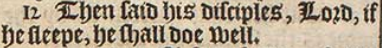12 Then said his disciples, Lord, if he sleepe, he shall doe well.