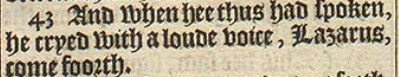 43 And when hee thus had spoken, he cryed with a loude voice, Lazarus, come foorth.