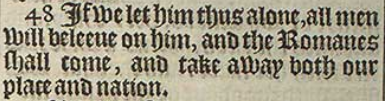 48 If we let him thus alone, all men will beleeue on him, and the Romanes shall come, and take away both our place and nation.