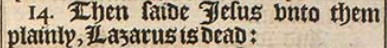 14 Then saide Iesus vnto them plainly, Lazarus is dead: