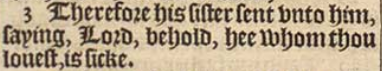 3 Therefore his sister sent vnto him, saying, Lord, behold, hee whom thou louest, is sicke.