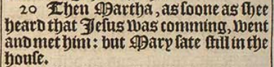 20 Then Martha, as soone as shee heard that Iesus was comming, went and met him: but Mary sate still in the house.