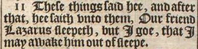 11 These things said hee, and after that, hee saith vnto them, Our friend Lazarus sleepeth, but I goe, that I may awake him out of sleepe.