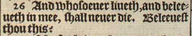 26 And whosoeuer liueth, and beleeueth in mee, shall neuer die. Beleeuest thou this?