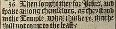 56 Then sought they for Iesus, and spake among themselues, as they stood in the Temple, What thinke ye, that he will not come to the feast?