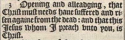 3 Eröffnend und behauptend, dass Christus notwendigerweise gelitten haben muss und von den Toten wieder auferstand: "Und dass dieser Jesus, den ich euch predige, Christus ist."