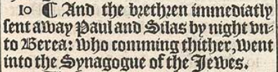 10 ¶ And the brethren immediatly sent away Paul and Silas by night vnto Berea: who comming thither, went into the Synagogue of the Iewes.