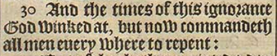 30 And the times of this ignorance God winked at, but now commandeth all men euery where to repent: