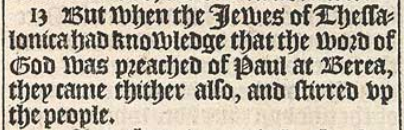 13 But when the Iewes of Thessalonica had knowledge that the word of God was preached of Paul at Berea, they came thither also, and stirred vp the people.