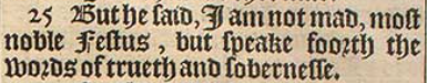 25 But he said, I am not mad, most noble Festus, but speake foorth the words of trueth and sobernesse.