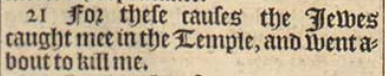21 For these causes the Iewes caught mee in the Temple, and went about to kill me.