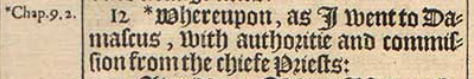 12 *Whereupon, as I went to Damascus, with authoritie and commission from the chiefe Priests:[*Chap.9.2.]