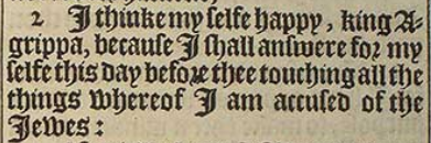 2 I thinke my selfe happy, king Agrippa, because I shall answere for my selfe this day before thee touching all the things whereof I am accused of the Iewes: