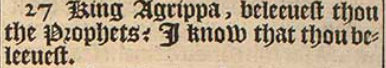 27 King Agrippa, beleeuest thou the Prophets? I know that thou beleeuest.