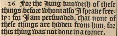 26 For the King knoweth of these things, before whom also I speake freely: for I am perswaded, that none of these things are hidden from him, for this thing was not done in a corner.