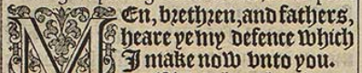 1 Men, brethren, and fathers, heare ye my defence which I make now vnto you.
